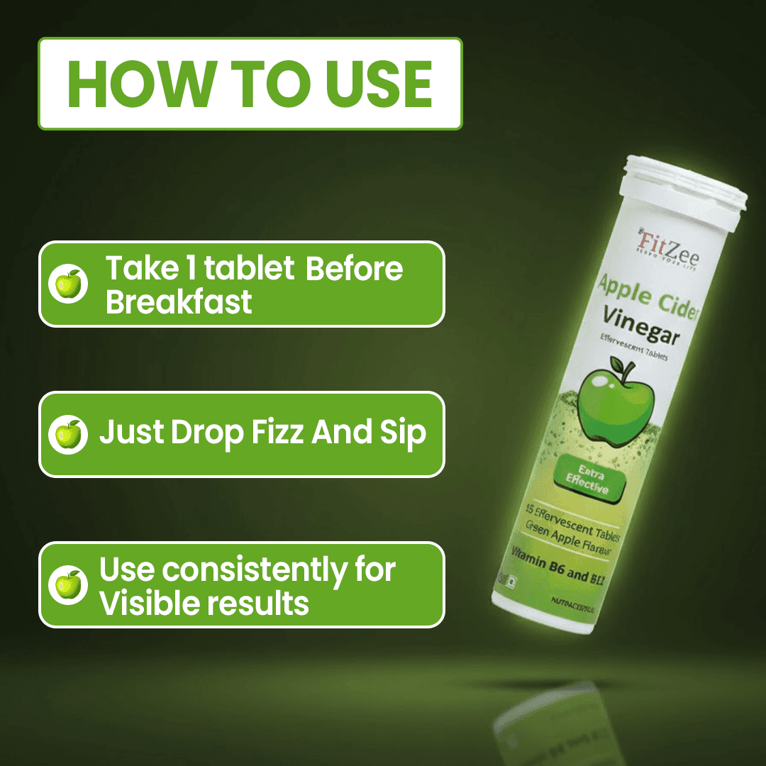 FitZee Apple Cider Vinegar Effervescent Tablets, Green, Set of 4