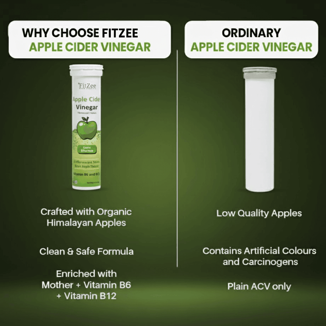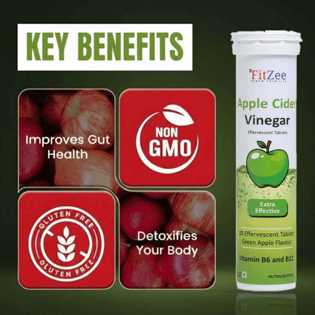 Manage your weight naturally and effectively with FitZee ACV Effervescent Tablets – a refreshing blend powered by Apple Cider Vinegar, Pomegranate Extract, and essential B Vitamins (B6 & B12). Each tablet is designed to: